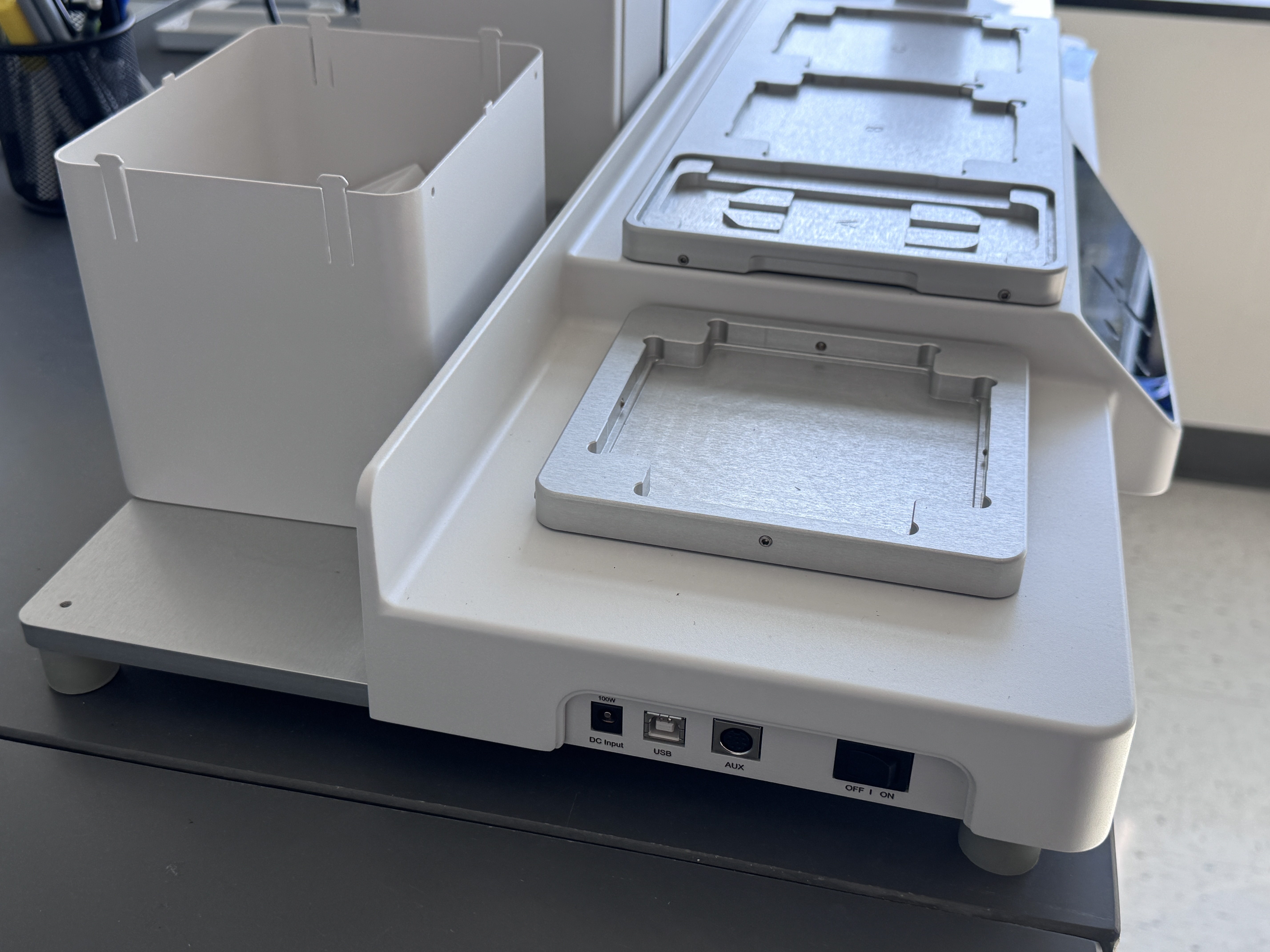 ?高通量處理能力:?? 配合多功能載臺(tái),可同時(shí)容納微孔板、試管架、深孔板等多種實(shí)驗(yàn)室器皿,輕松完成96孔板或384孔板的大規(guī)模樣本分配、梯度稀釋、PCR反應(yīng)體系構(gòu)建等任務(wù),將科研人員從重復(fù)性勞動(dòng)中解放出來。